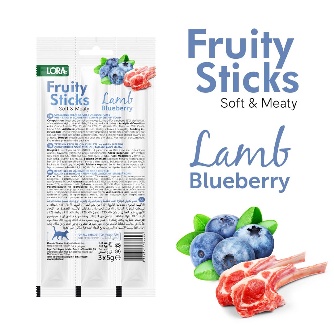 “Lora Fruity Sticks Lamb & Blueberry” için yorum yapan ilk kişi siz olun